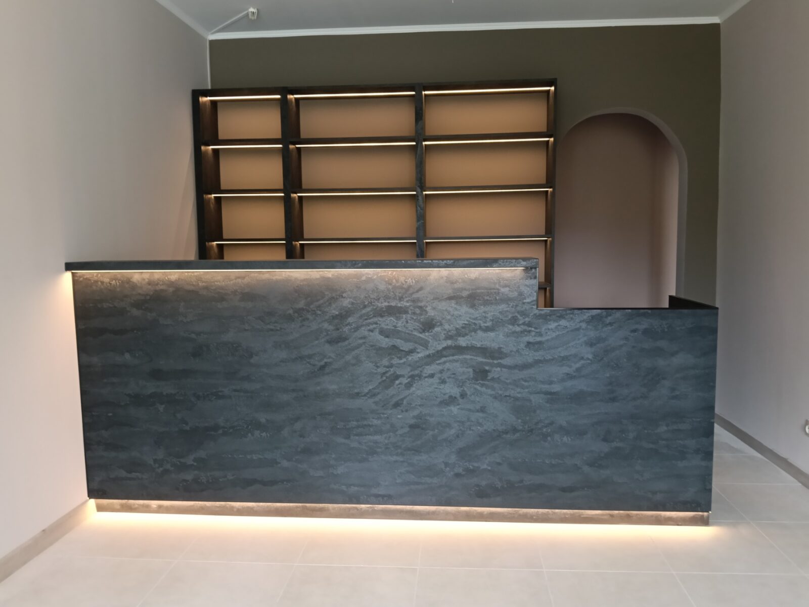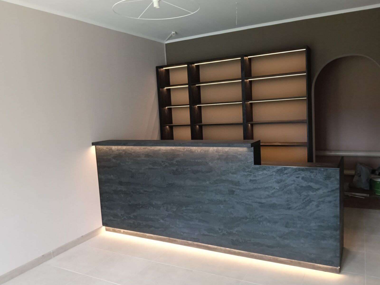 Барная стойка и полочки с подсветкой